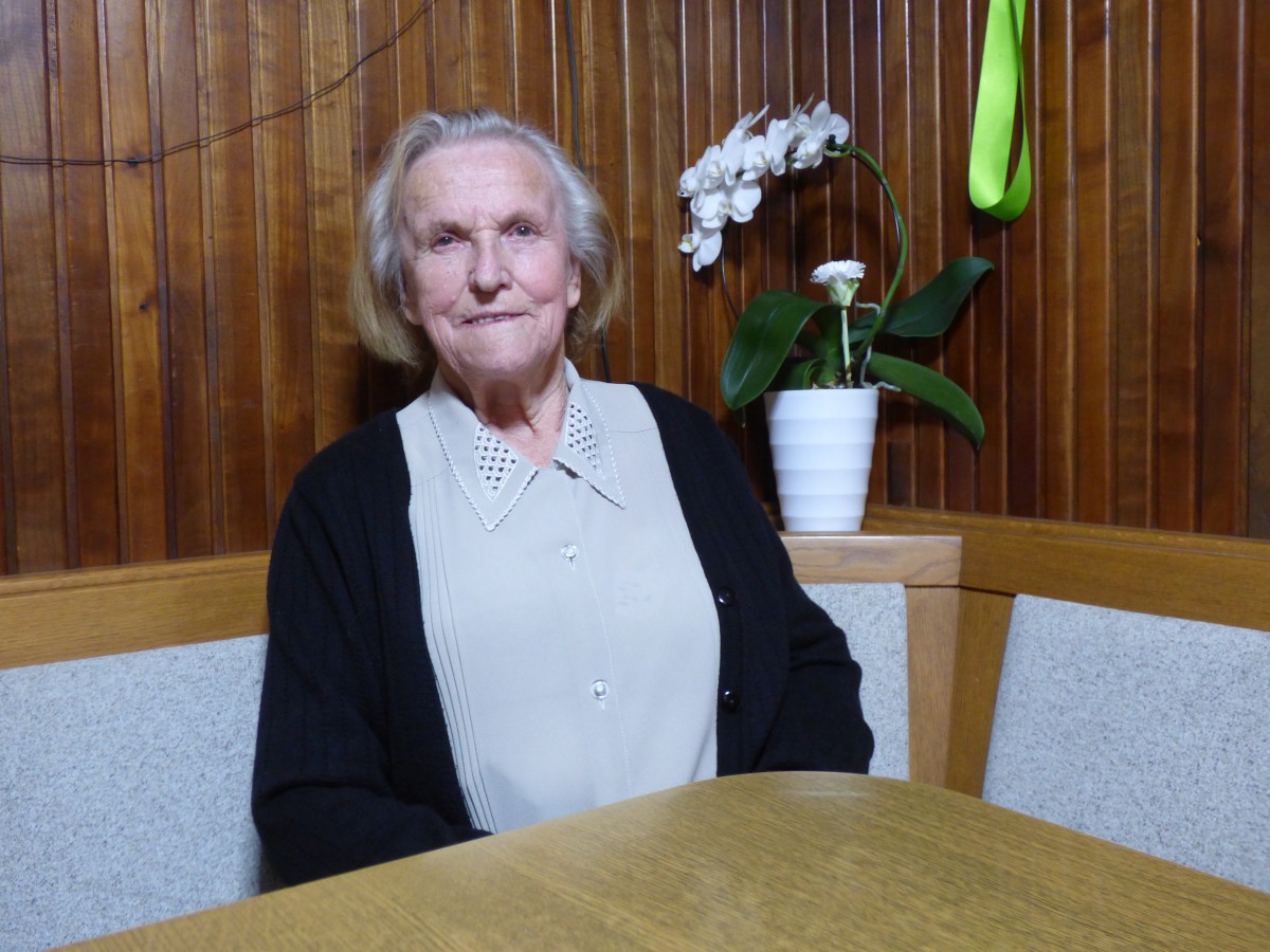 V osnovno šolo je hodila v Lučine, ker je bila bližje kot tista v Črnem Vrhu. Naredila je pet razredov, več jih zaradi prekinitve šolanja med vojno ni mogla. Iz časov druge svetovne vojne, ki se je začela, ko je bila šestletna deklica, se spominja občutkov strahu, saj zvečer pri hiši nikoli niso vedeli, od kod bo kdo prišel in kaj bo zahteval. Oče je bil primoran vstopiti med domobrance v Črnem Vrhu, saj bi jih v nasprotnem primeru Nemci izselili. Ob koncu vojne je bil med umikom na Koroško najverjetneje ubit med spopadi s partizani v Podljubelju, kjer so ga sotrpini nazadnje videli.