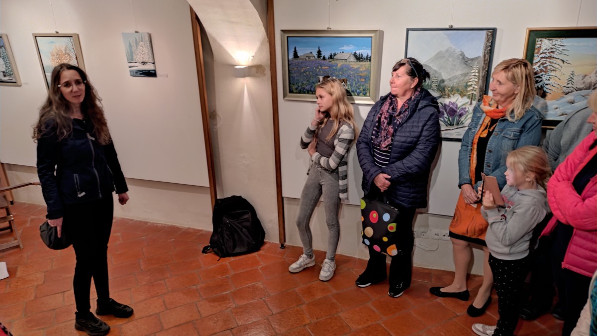 V okviru likovne sekcije so udeleženke razdeljene na dve skupini, začetni in nadaljevalni tečaj. Prvi je namenjen tistim, ki šele spoznavajo osnove likovnega ustvarjanja. Ta skupina se osredotoča na osnove likovnih tehnik in materialov, udeleženke v njej razvijajo svoje ustvarjalne sposobnosti in ustvarjalno samozavest. Druga skupina pa je namenjena udeleženkam, ki že obvladujejo osnovno likovno znanje in imajo izkušnje v likovnem ustvarjanju. Skupaj z mentorico nadgrajujejo pridobljene veščine in raziskujejo raznovrstne tehnike, spodbuja jih tudi k individualnemu umetniškemu izrazu. Kot je povedala vodja likovne sekcije Zvezdana Kralj, je to prostor za učenje, druženje in medsebojno podporo, v katerem imajo udeleženke priložnost deliti svoje izkušnje, se učiti druga od druge in skupaj ustvarjati v prijetnem in spodbudnem okolju, likovni dosežki pa jih notranje izpolnjujejo in bogatijo. Svoje delo pogosto predstavljajo javnosti na razstavah in drugih kulturnih dogodkih. V preteklem letu so se med drugim udeležile razstave 21. Likovni extempore Logatec 2025, razstave JSKD v Sokolskem domu v Škofji Loki in likovnega natečaja v Žireh z naslovom Rišem, pišem, fotografiram kulturo. Ob koncu leta ustvarjajo unikatne novoletne voščilnice. Redno razstavljajo na hodniku pred pisarnami občinske uprave v Sokolskem domu v Gorenji vasi. Če kdaj naredijo malo daljši premor, pojasnjuje Kraljeva, kmalu dobijo odzive, da pogrešajo njihove likovne stvaritve na stenah, saj je brez njih hodnik pust. Vsako leto organizirajo tudi likovno kolonijo, na kateri skupaj ustvarjajo na določeno temo, letos so se ustalile ob ribniku v Novakih in upodabljale okoliško pokrajino in njene detajle. V novembru so razstavljale v galeriji Šubičeve hiše na razstavi Svet med vrhovi in cvetovi.