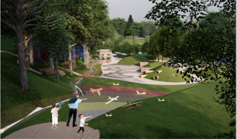 Na območju parka v Logu ob sprehajališču od Gorenje vasi do Hotavelj, že sedaj priljubljenem zbirališču obiskovalcev, ki se lahko sprehodijo po lesenih stezah ob urejenem ribniku ali se razgibajo na postavljenih orodjih telovadnice v naravi, nastaja nova razširjena podoba ureditve parka.