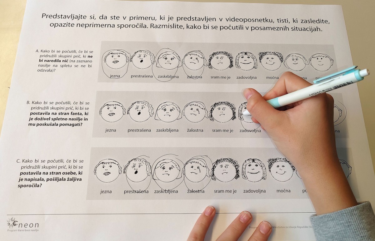 Duševno zdravje otrok in mladostnikov je v časih vzpona sodobne tehnologije ključno, kar že zgodaj prepoznavamo tudi v šoli. Lažne novice, različne oblike nasilja in zlorabe otrok na spletu so žal resničnost in negativno vplivajo na otrokovo fizično in psihično počutje ter njegovo telesno in duševno zdravje. Te posledice lahko zelo grobo posežejo v otrokov osebnostni razvoj, medosebne odnose, možnosti za šolanje, ustvarjanje. Da bi jih čim bolj pripravili na sodobne izzive, so učenke in učenci sodelovali na delavnicah Moja spletni zemljevid in podoba: pravila spletnega bontona, Ali je sodobne tehnologije lahko preveč? in Zanke in pasti spletnih omrežij. Mnogi mladi so prepričani, da znajo na spletu zelo dobro poskrbeti za svojo varnost in se tam tudi ustrezno obnašati. Naše izkušnje kažejo, da mladostniki in mladostnice teoretično sicer veliko vedo, v praksi pa pogosto delajo ravno obratno. Veliko se jih strinja, da je sodobne tehnologije preveč, hkrati pa priznavajo, da se ji težko odpovejo.