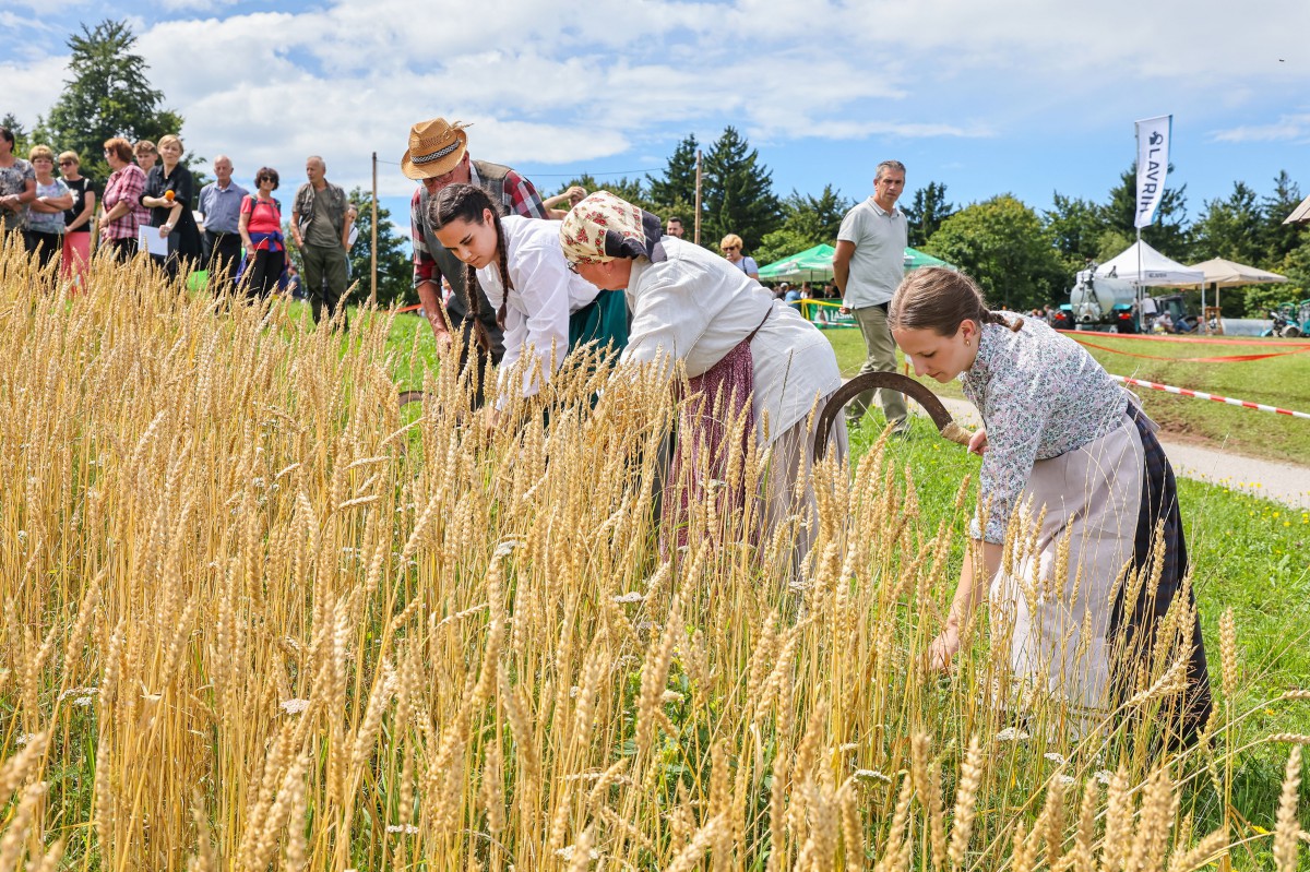 V Žirovskem Vrhu Sv. Urbana je bilo tako tudi letos mogoče spoznati, kako je bilo videti delo na kmetiji, ko so še vse delo v glavnem opravljali ročno. Na njivi pšenice je Olga Šubic prikazala, kako so želi žito s srpom, v pomoč sta ji bili Tinkara Kavčič in Ema Oblak, ki sta tokrat prvič dobili srp v roke. V nadaljevanju so nato žito povezali v snope, te naložili na voz in jih odpeljali v kozolec sušit, da so bili nato nared za mlatenje s cepci, s katerim so ločili zrnje od slame.