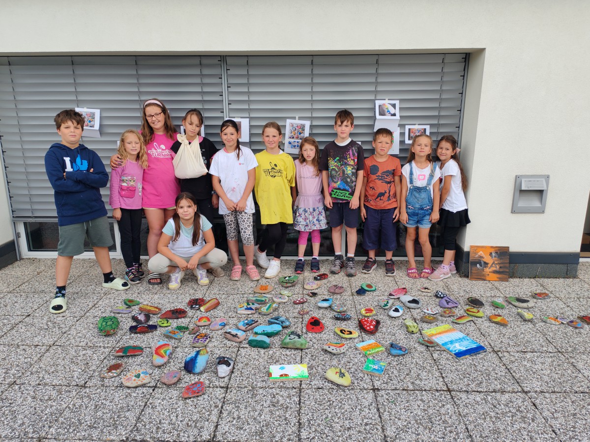 V mesecu juliju smo z Društvom prijateljev mladine Škofja Loka izvedli dve ustvarjalni delavnici za otroke. Na prvi so otroci barvali kamne in jih nato sestavili v dve dolgi kači, ki vas še vedno pozdravljata s terase ob vhodu v knjižnico. Druga delavnica je bila namenjena izdelavi meduz iz papirja. Prekrasne izdelke si vse do konca septembra lahko ogledate v otroškem razstavnem kotičku. Razstavni prostor na hodniku vstopa v knjižnico do oktobra ponuja ogled čipk, ki so jih izdelale članice Klekljarskega društva Deteljica Gorenja vas.