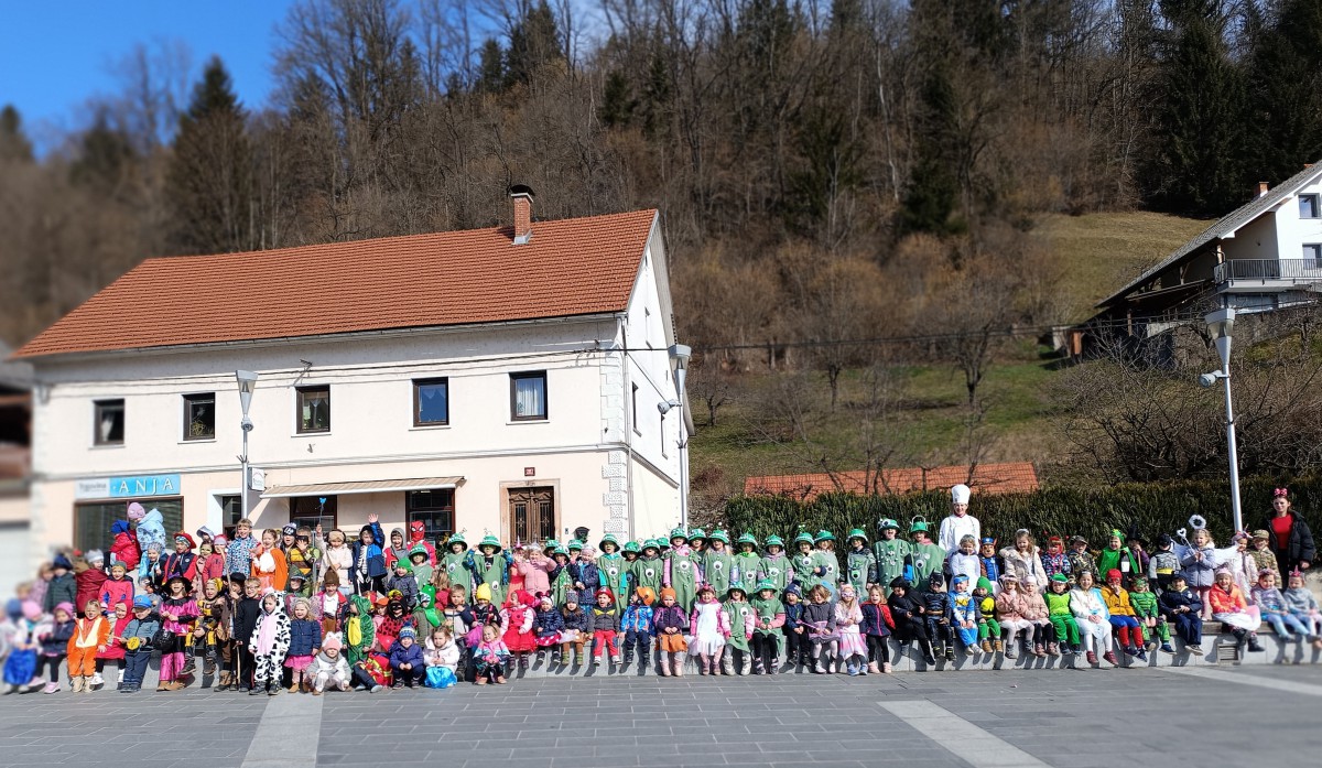 Najmlajši v enoti Dobrava so na pustni torek rajali skupaj starši, v Zali so rajali skupaj v igralnicah, večina, kar šest igralnic otrok z vzgojiteljicami iz Vrtca Zala in enote Dobrava, pa so se združili in se v dolgi, glasni, pisani in razposajeni povorki odpravili po Gorenji vasi. Dolga kolona pisanih šem se je vila skozi vrtec, šolo, čez Trato, do Hiše generacij, kjer smo veseli mahali starejšim, ki so nas že čakali in nas pozdravljali med mimohodom. Letos smo prvič zavili na občinsko upravo in presenetili zaposlene na Občini Gorenja vas - Poljane. Mimo Mercatorja smo krenili do Trga Ivana Regna, kmetijske zadruge, skozi kavarno Ajda, čez krožišče in most, mimo gasilskega doma, obrata Jelovice in zdravstvenega doma nazaj do Vrtca Zala. Otroke iz enote Dobrava je čakala še vrnitev na Dobravo. Vso pot smo pozdravljali mimoidoče, sprejemali sladice in še močneje mahali vsem tistim, ki so nam glasno hupali. Zime nismo mogli pregnati, ker je letos v naše kraje pomolila le nos in prav hitro kar sama odšla.