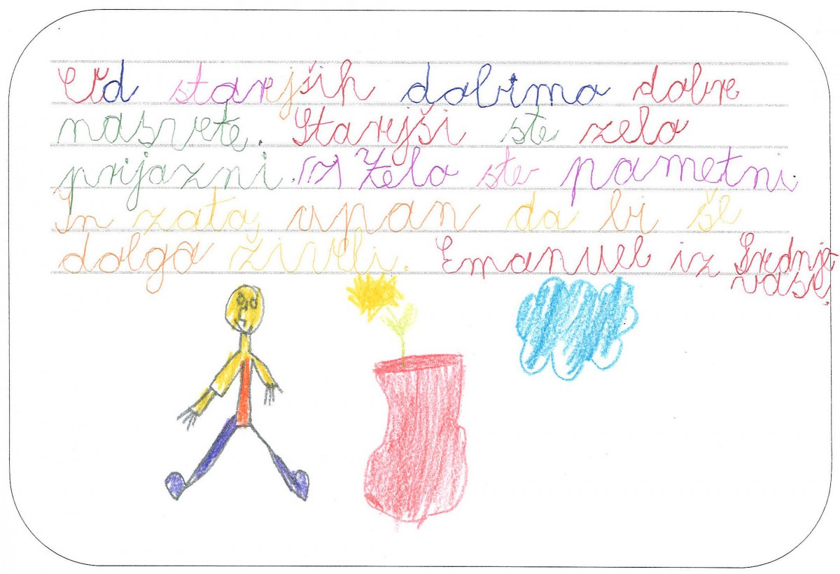 Pred 1. oktobrom, dnevom starejših, so se tretješolci pridružili vseslovenski akciji Pokloni čas, polepšaj dan. V sklopu medgeneracijskega povezovanja so učenci ustvarjali drobne pozornosti za starejše, ki bodo prek rok številnih patronažnih sester našle pot do njihovih domov. Upajo, da jim bodo otroške misli polepšale dan vsaj toliko, kot ga je prijetno delo za lep namen polepšalo njim.